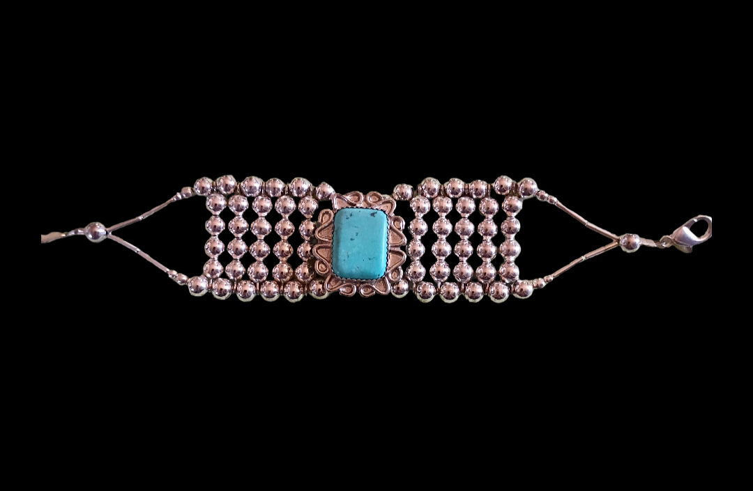 5.5in bracelet with turquoise embedded in bezel on Navajo Wire Edge Design Pendant.
